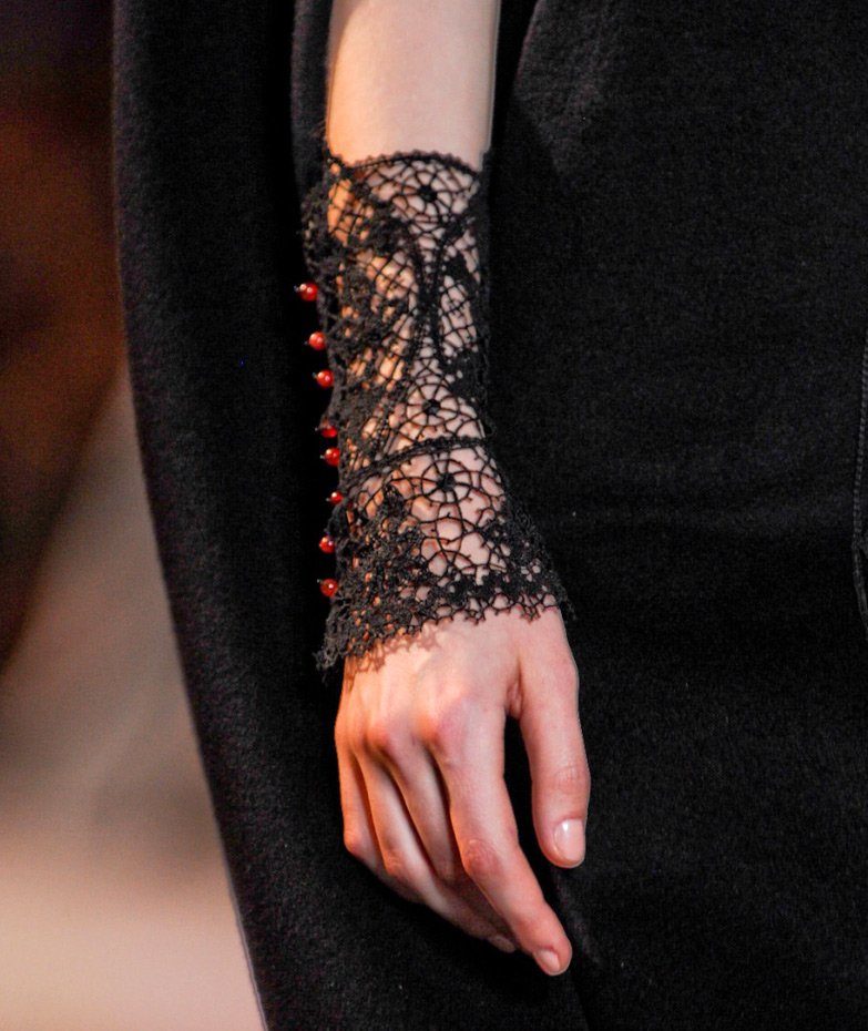La Collection Bijoux Tous, dédiée aux bijoux du passé, présente des bracelets en dentelle Rosa d'Abril en argent noirci et doré. Juste une décoration incroyable pour une fille glamour! Des bracelets similaires peuvent être trouvés dans les collections Krizia. Et Ulyana Sergeenko en a des similaires - de la vraie dentelle.