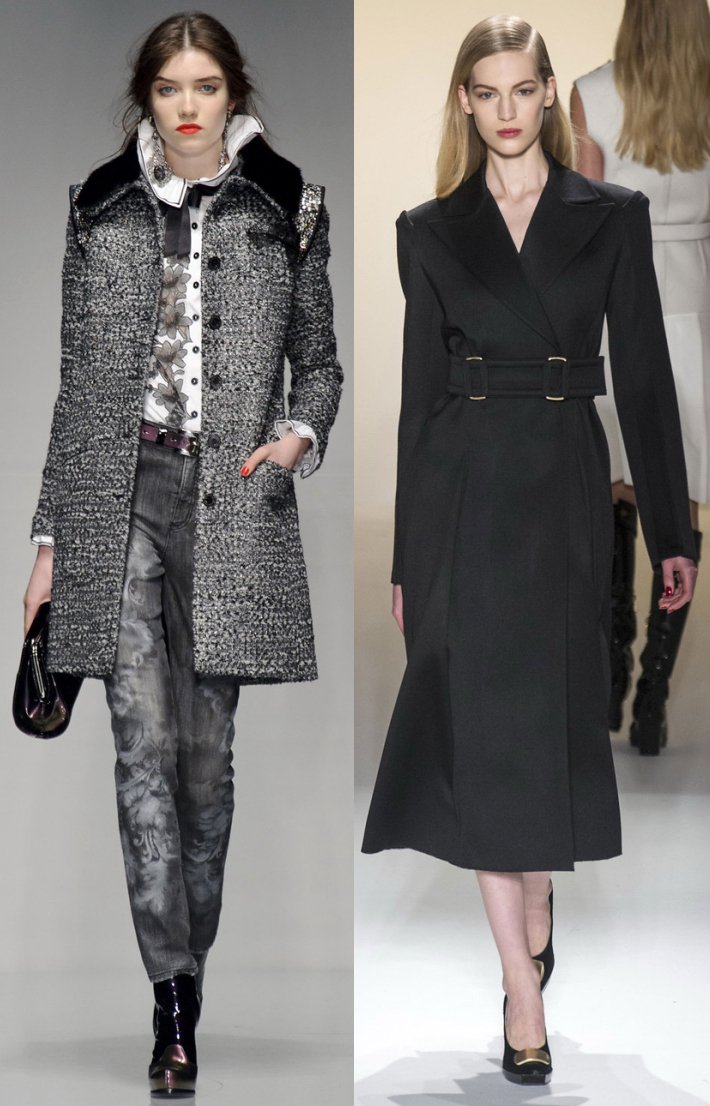 Le manteau peut être à simple boutonnage, à double boutonnage ou simplement enveloppant. Au cours de la nouvelle saison, les concepteurs ont prêté attention à l'augmentation du volume des épaules et des manches de la ligne des épaules.