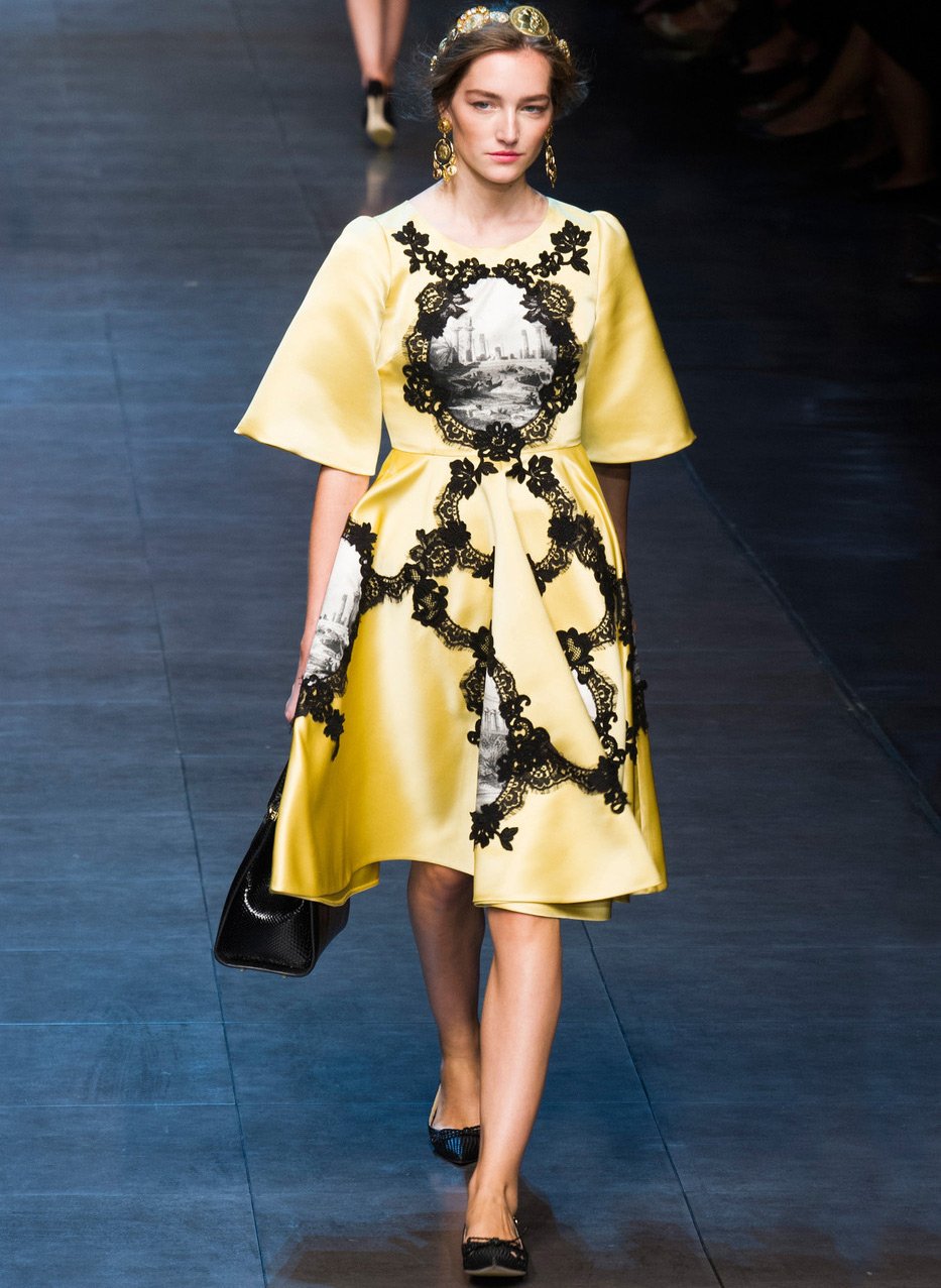Les créateurs créent des silhouettes qui mettent l'accent sur la forme et les courbes du corps, tandis que, comme ils le croient eux-mêmes - "... le corps d'une femme ne devrait pas avoir l'air accessible". Lorsque Dolce et Gabbana créent une collection, elles partent d'un rêve, d'un fantasme. C'est probablement pourquoi chaque collection de créateurs "... est originale, audacieuse, elle a une idée et une image".