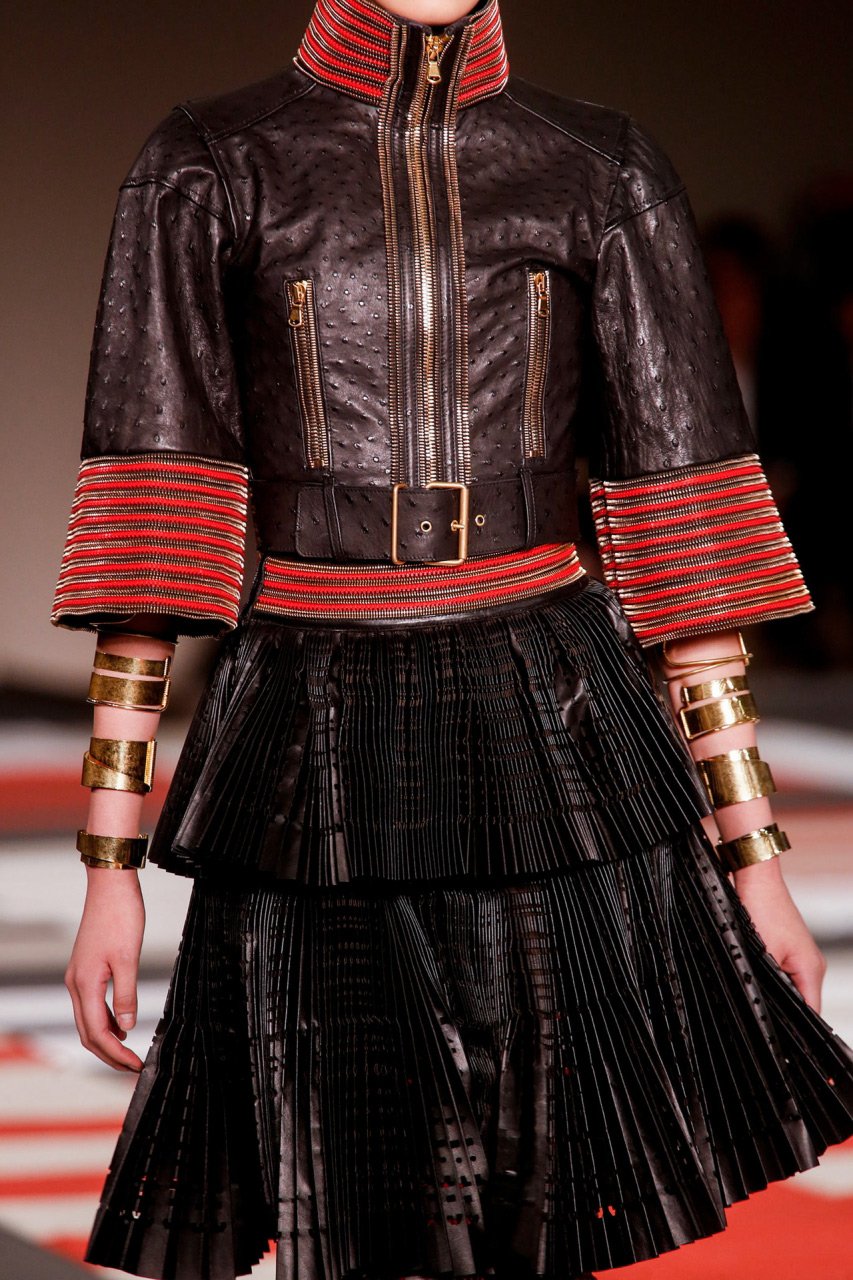 On peut observer dans la collection des images en noir et blanc, qui font sans aucun doute partie des collections printemps-été 2026 pour de nombreux créateurs. Les plumes, le cuir, le métal, si chers au créateur de la marque, ne sont pas oubliés non plus. Et les combinaisons de rouge, noir et blanc rappellent la couleur ethnique de combat des guerriers africains du passé.