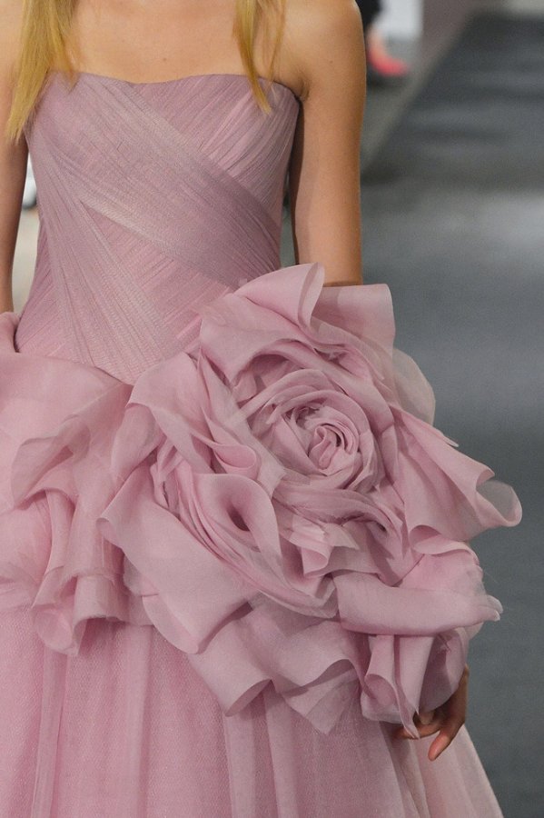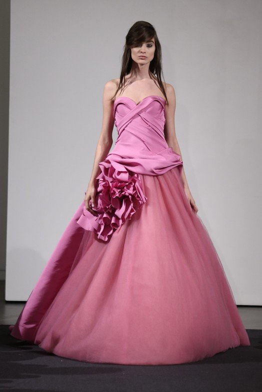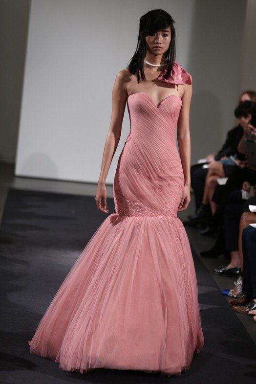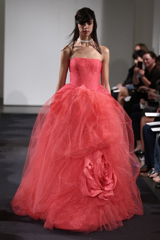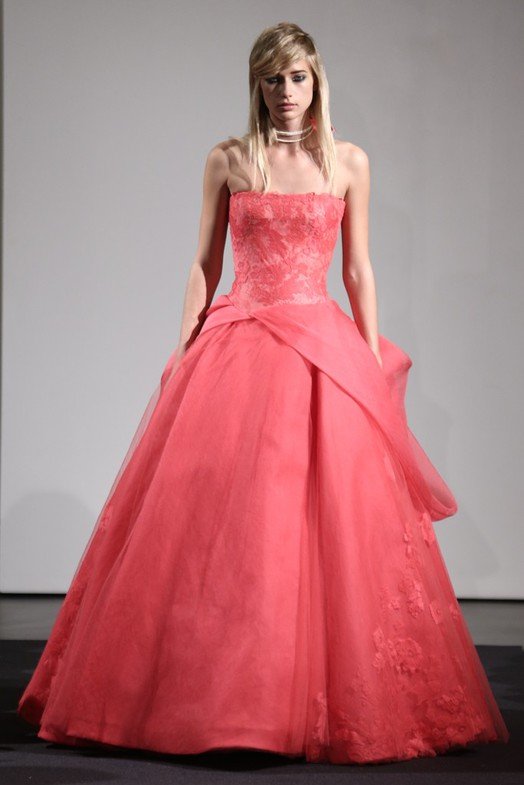 Vera Wang a décidé de créer des robes dans diverses nuances vives, dominées par les tons rose, pêche, lilas, corail et rouge. Il est important de noter ici qu'au départ, les robes de mariée n'étaient pas blanches - elles étaient rouges, et que beaucoup plus tard, le blanc est devenu le symbole traditionnel de la mariée.