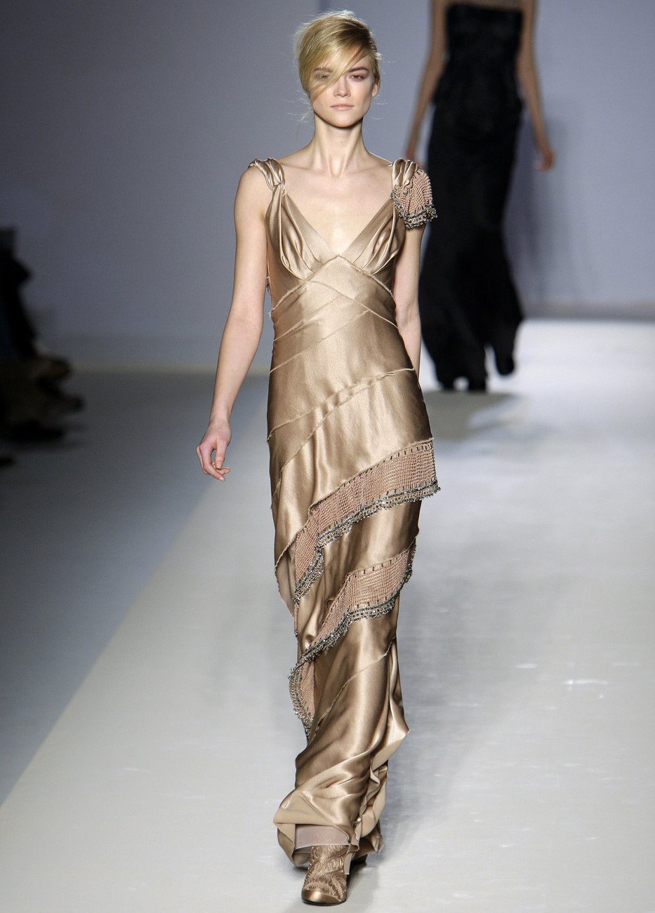 Adorées par Scarlett Johansson et Salma Hayek, les robes d'Alberta Ferretti sont réputées pour leurs draperies, leur décor en cristal exquis, leurs superpositions de tissus fins et leurs plis.