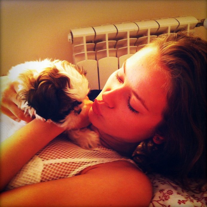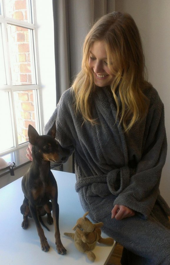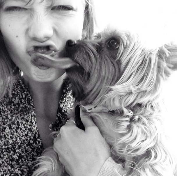 Vidéo du top modèle Karlie Kloss marchant avec son chien.