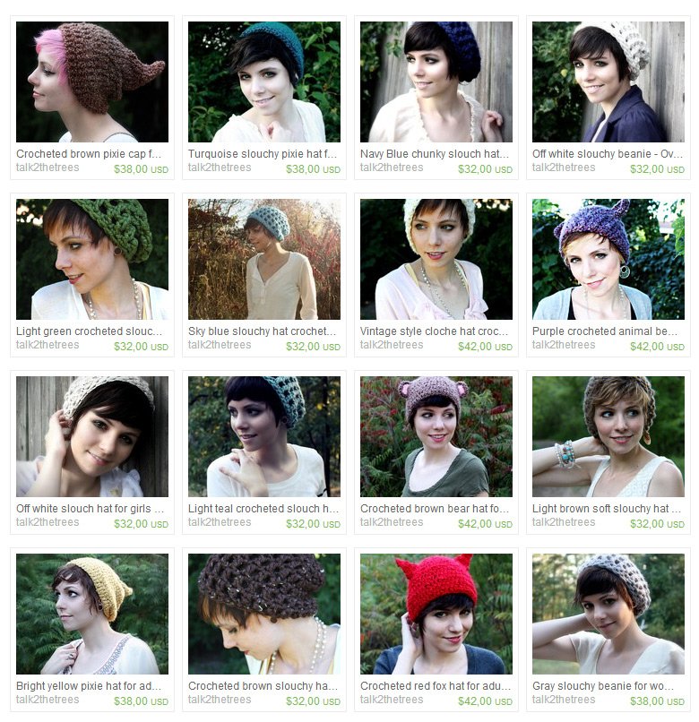 La fille non seulement dessine et tricote de beaux chapeaux, elle pose à merveille pour la caméra et vend ses chapeaux. Seulement je ne donnerai pas l'adresse de la page où elle vend ses bonnets tricotés, pour que personne ne pense que stylenow.techinfus.com fait de la publicité pour les bonnets de Rachel.