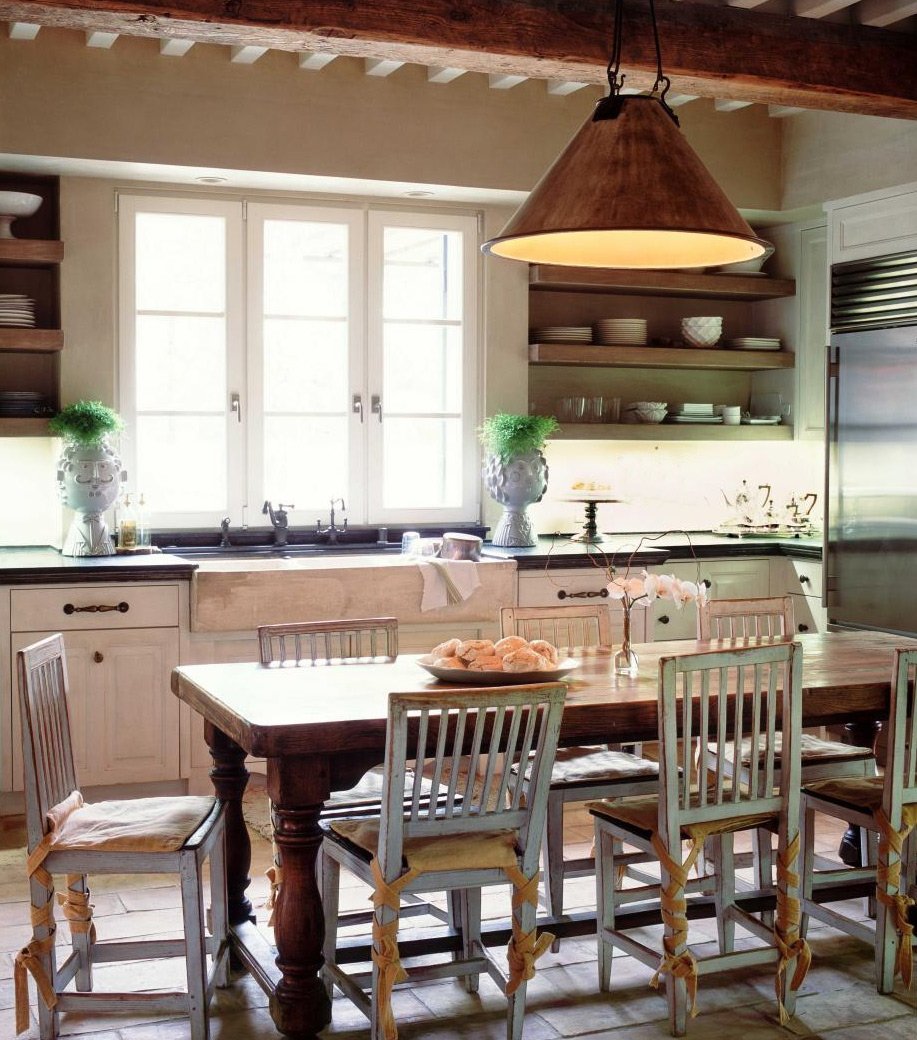 L'idée centrale d'un tel intérieur est le confort de la maison, créé par de nombreuses générations d'une grande famille amicale. C'est pourquoi non seulement des matériaux naturels sont utilisés pour cela, tels que le bois, la pierre, le bronze, mais portant l'empreinte du temps - avec des traces d'abrasion, de rugosité, d'éclats et même de rayures. Pas de surfaces lisses et brillantes en acier, pas d'accessoires high-tech ou futuristes, rien de franchement nouveau et résolument moderne. Que vous parcouriez les marchés aux puces et les magasins d'antiquités pour les bons meubles et accessoires, ou que vous les achetiez auprès de fabricants modernes spécialisés dans les effets du vieillissement, c'est une question de goût, de temps et d'opportunité. Dans tous les cas, la récompense sera un environnement confortable et calme dans lequel vous aurez envie de revenir encore et encore.