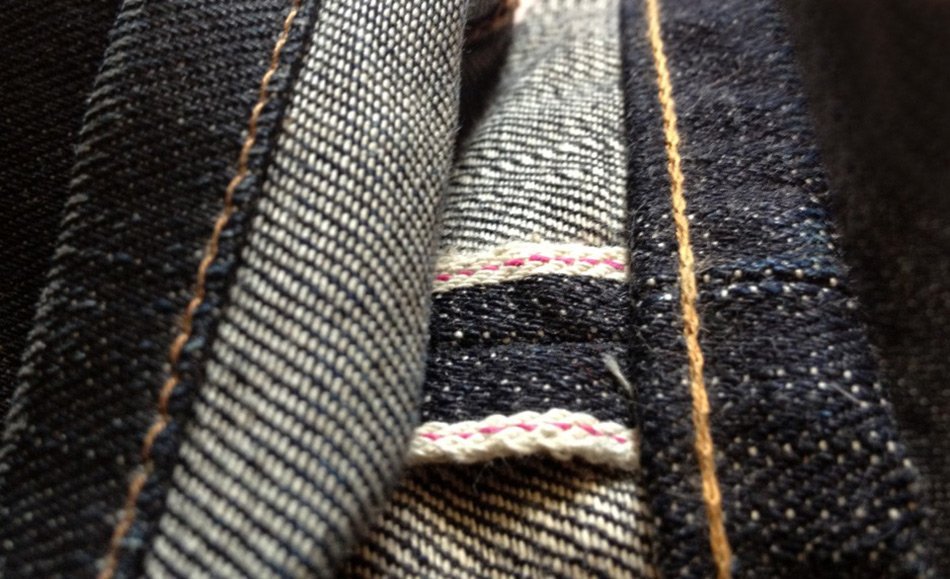 Aux deux extrémités du rouleau de denim, un ourlet blanc non peint est fait d'un fil de couleur entrelacé qui est en forme de métier à tisser pour empêcher le bord du tissu de s'effilocher. Le denim ordinaire est surjeté sur les bords.