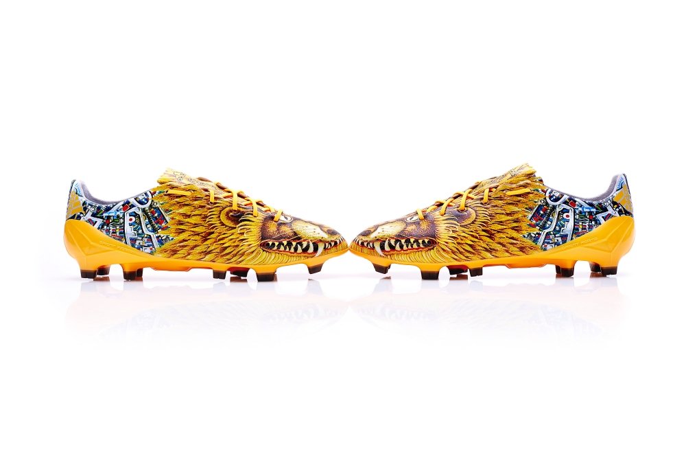 La nouveauté poursuit la série innovante de chaussures de football, qui comprend également le pack White Copa Mundial et The Enlightened précédemment présentés. Le design des chaussures de football Yohji Yamamoto adizero f50 est unique. Le devant de la chaussure est décoré de lions impériaux japonais qui gardaient les empereurs dans les temps anciens Japon.
