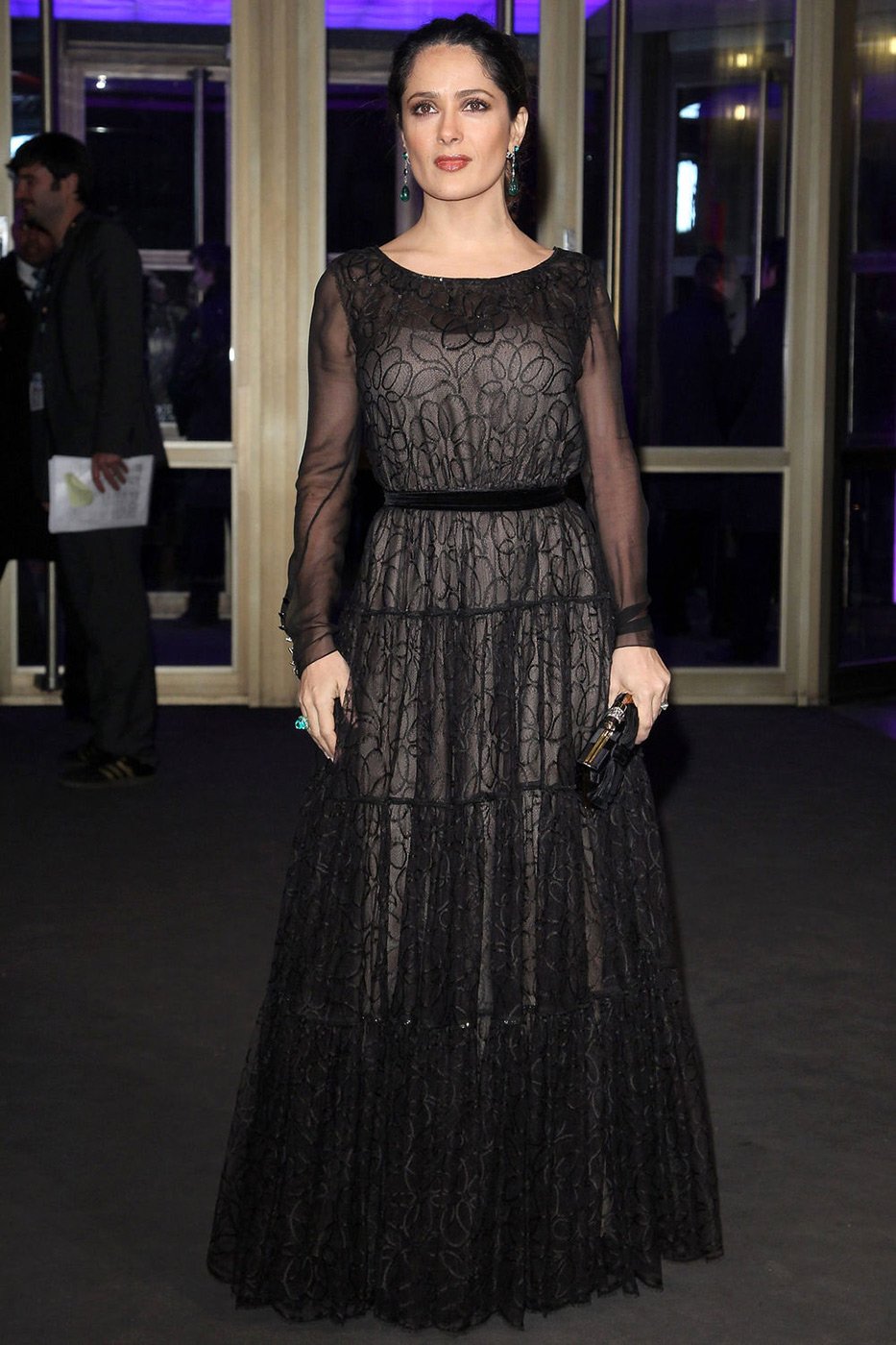 Voyons une photo de Salma Hayek et ses belles robes, et rappelons en même temps un peu la biographie et les qualités personnelles de l'actrice.