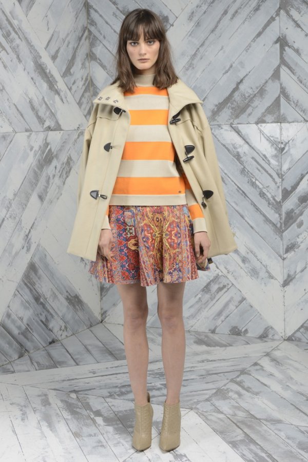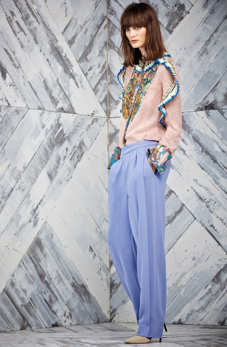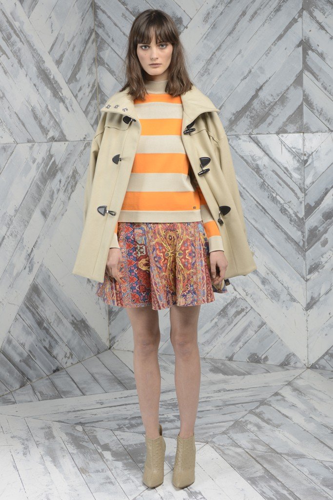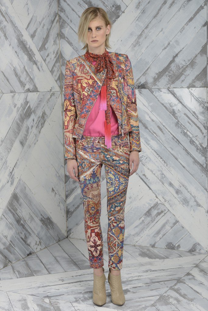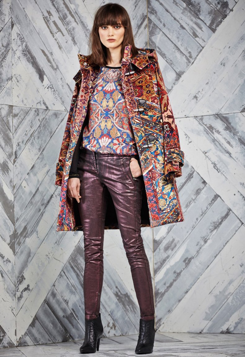 Dans la nouvelle collection Pre-Fall automne-hiver 2025-2026, on peut voir une combinaison d'ornements de tapis avec des motifs de tapisserie et bien sûr les imprimés traditionnels de la marque.