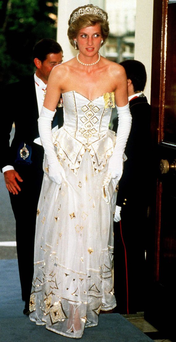 La robe est apparue dans la garde-robe de Diana en 1986. Princesse a porté la robe à plusieurs reprises lors de divers événements publics, y compris la première du ballet "Ivan le Terrible" lors de la tournée 1986 du Théâtre Bolchoï.