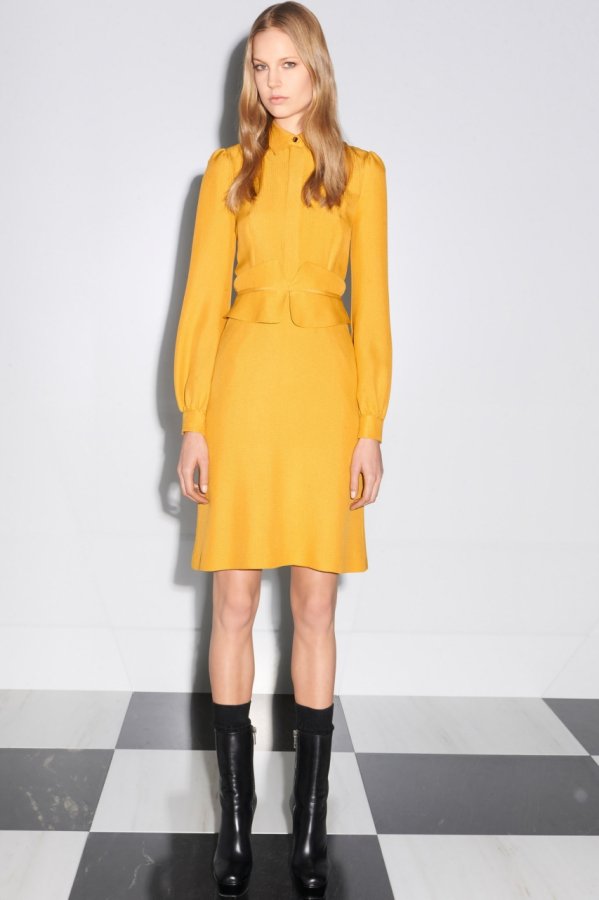 La directrice artistique de Gucci, Frida Giannini, s'inspire des tendances des années 60 et 70 dans la nouvelle collection Pre-Fall pour la saison automne-hiver 2025-2026, reflétée dans les imprimés et les silhouettes. Les images sont peintes dans des couleurs vives - fuchsia, rouge-orange, jaune, azur avec l'ajout de grands imprimés d'animaux, qui rappellent davantage le camouflage que la peau de léopard.
