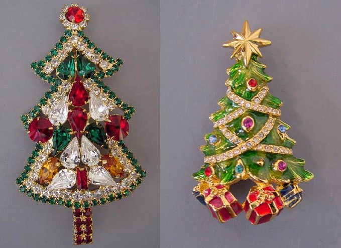 Jetez un œil à ces photos, qui montrent des décorations vintage pour le Nouvel An et Noël. Ici, vous pouvez voir des bonhommes de neige, des étoiles, des anges et, bien sûr, de nombreux arbres de Noël étincelants. Une telle broche ou pendentif sera un excellent ajout à votre look de fête.