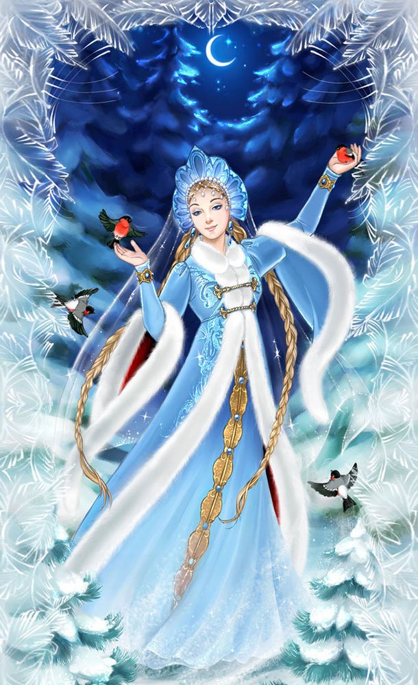En parcourant les images avec Snow Maiden, vous pouvez voir que, contrairement à de nombreux personnages modernes - générés par le cinéma américain et les anime japonais, elle est dépourvue de sexualité. La Snow Maiden rayonne de gentillesse, parfois de joie et de plaisir, et parfois de méditation et de tristesse, ainsi la beauté hivernale reflète les humeurs de différentes personnes, car tout le monde ne rencontre pas le Nouvel An exclusivement avec joie et plaisir.
