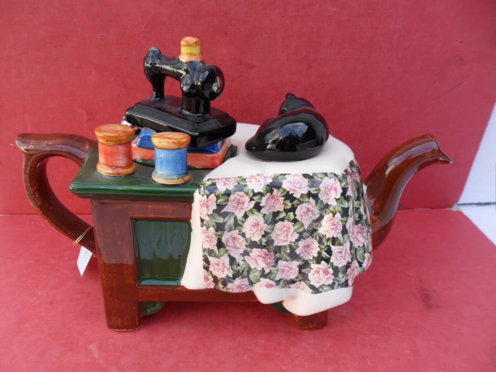 Il peut s'agir d'une boîte pour divers accessoires de couture ou d'une boîte à bijoux. Peut-être une théière, un réveil ou autre chose. Jetez un œil aux photos de ces machines à coudre, elles ne sont pas mignonnes !