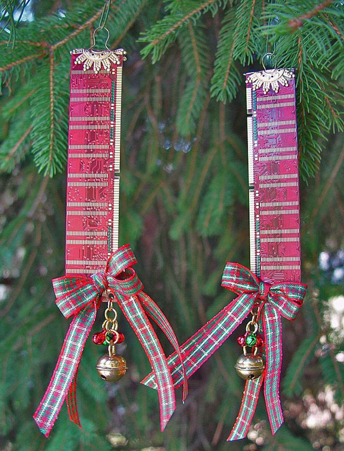 Après avoir installé le sapin de Noël, vous devez l'habiller et ici, vous pouvez montrer toute votre imagination. Regardez la photo - ce que les créatifs ne trouveront pas. Les objets les plus insolites peuvent servir de décoration pour le sapin de Noël, même des bâtons de RAM d'un ordinateur de bureau !