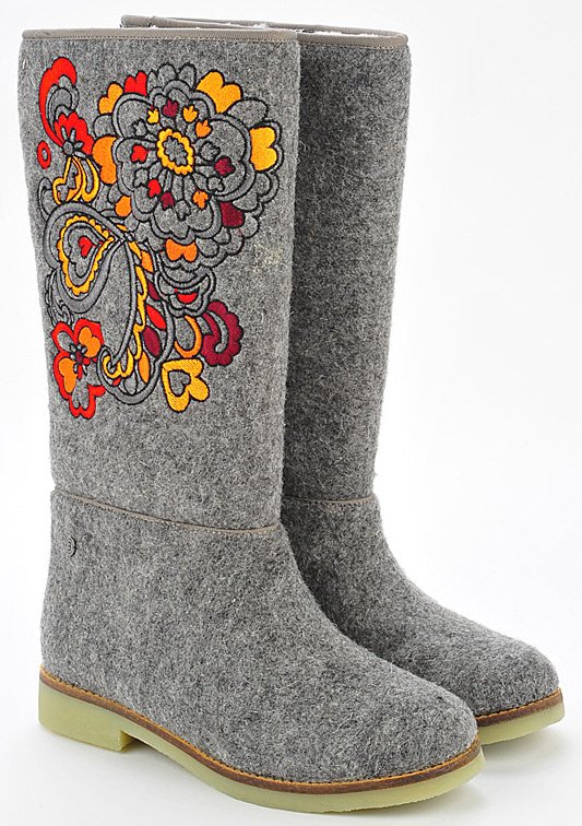 La patrie des vraies bottes en feutre est considérée comme la ville de Myshkin, dans la province de Yaroslavl, dont les artisans ont été les premiers à rouler des bottes entièrement, avec un bootleg. De la région de Yaroslavl, les bottes en feutre ont commencé à se répandre dans toute la Russie, et bientôt chaque village avait ses propres artisans pour fabriquer des bottes en feutre, et des usines entières pour la production de bottes en feutre ont commencé à être construites dans les villes.