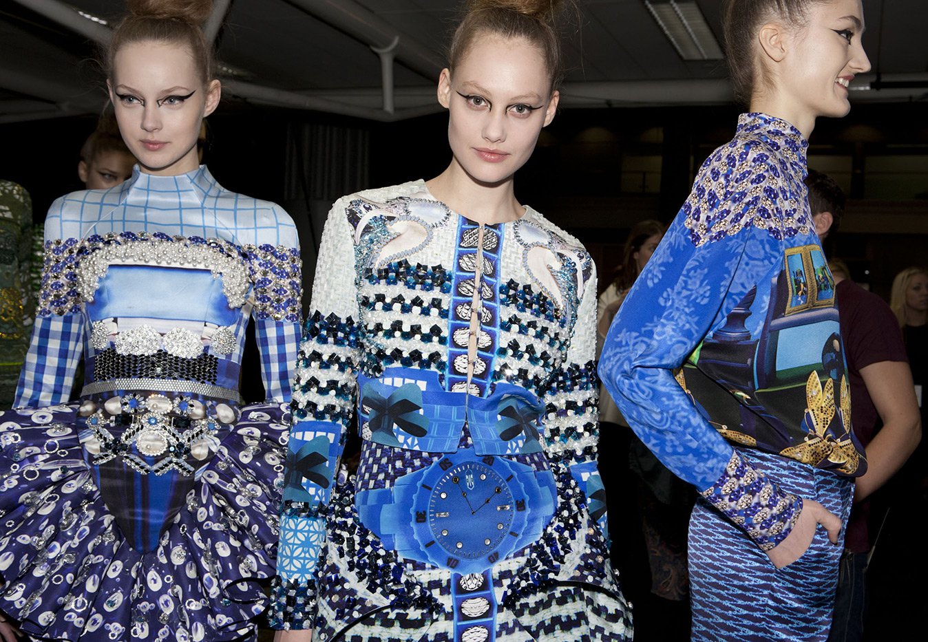 Tous les modèles de la collection sont unis par une seule pièce. Marie peut s'inspirer non seulement des œuvres de Jean Honoré Fragonard, Jean Marc Nattier, Henri Matisse, François Boucher, René Magritte, mais aussi des choses les plus ordinaires. On voit tout ce que l'on veut sur les robes de Mary : téléphones, structures métalliques, vitraux en dentelle ancienne, et même d'étonnantes haies vertes de parcs à l'anglaise. Chacun de nous peut voir quelque chose de différent dans les impressions ...