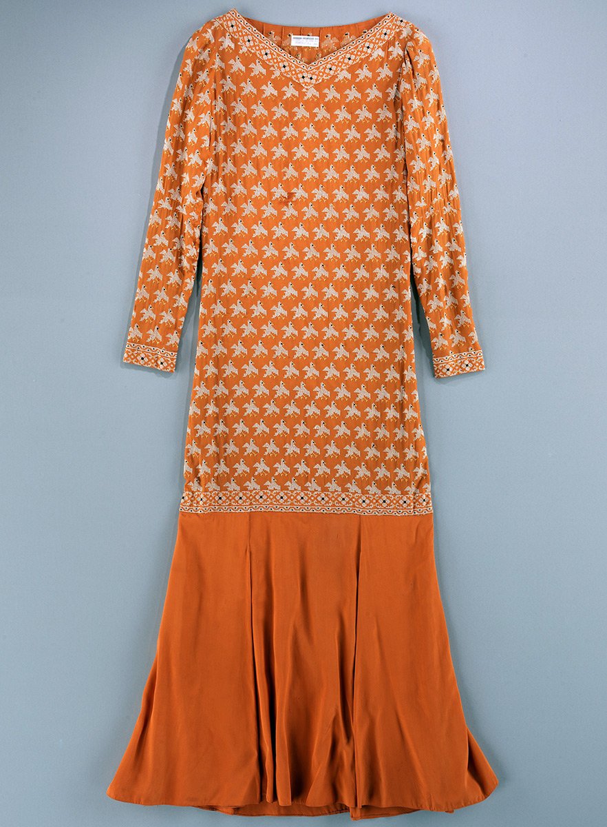 Dans les années 1920, le style Art Déco est né, qui mêle abstractionnisme, cubisme, éclectisme. Au cours de ces années, l'intérêt pour l'oriental, lumineux et insolite est revenu à nouveau. Les saisons de ballet russe de Sergueï Diaghilev dans les années 10 ont excité tout Paris. L'attitude enthousiaste envers les peintres et les artistes russes a suscité un vif intérêt pour les nouvelles couleurs et formes. Les costumes luxueux des ballerines russes étaient incroyables. Et tout cela a abouti à ces éléments et motifs qui sont apparus dans les tenues des fashionistas. L'un des premiers à succomber aux charmes des saisons russes fut le faiseur de tendances de la mode parisienne des années 10, Paul Poiret.
