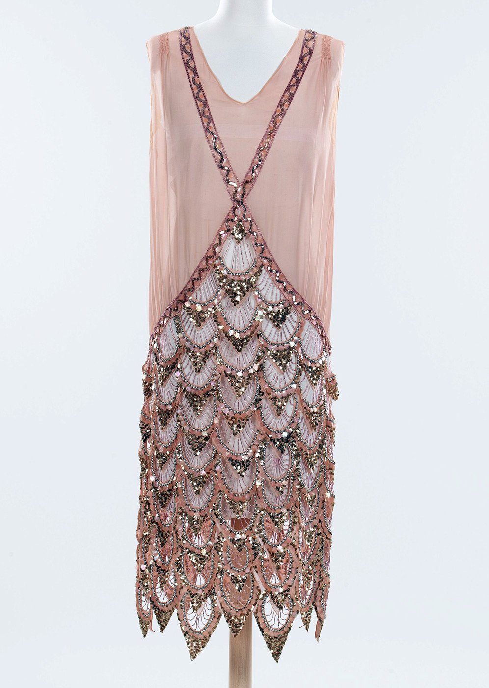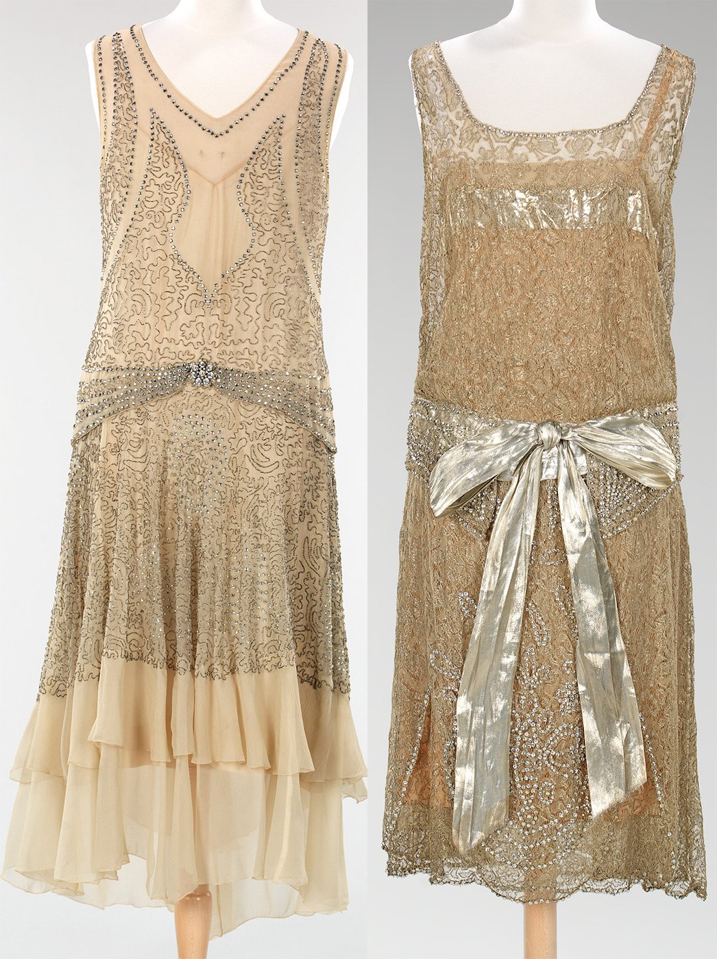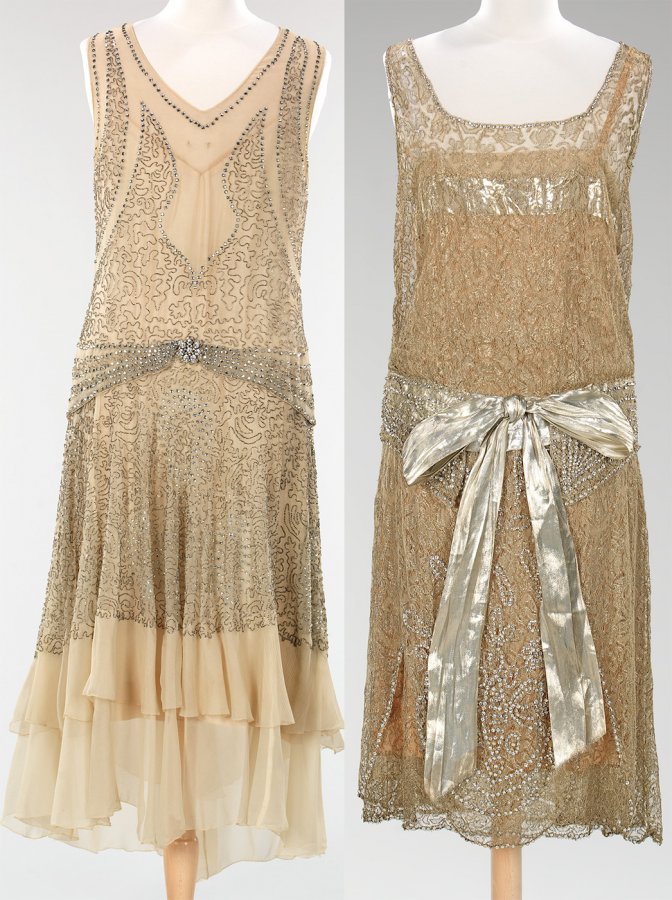 Les robes du soir étaient parfois assemblées à partir de fils perlés ou métalliques seuls.