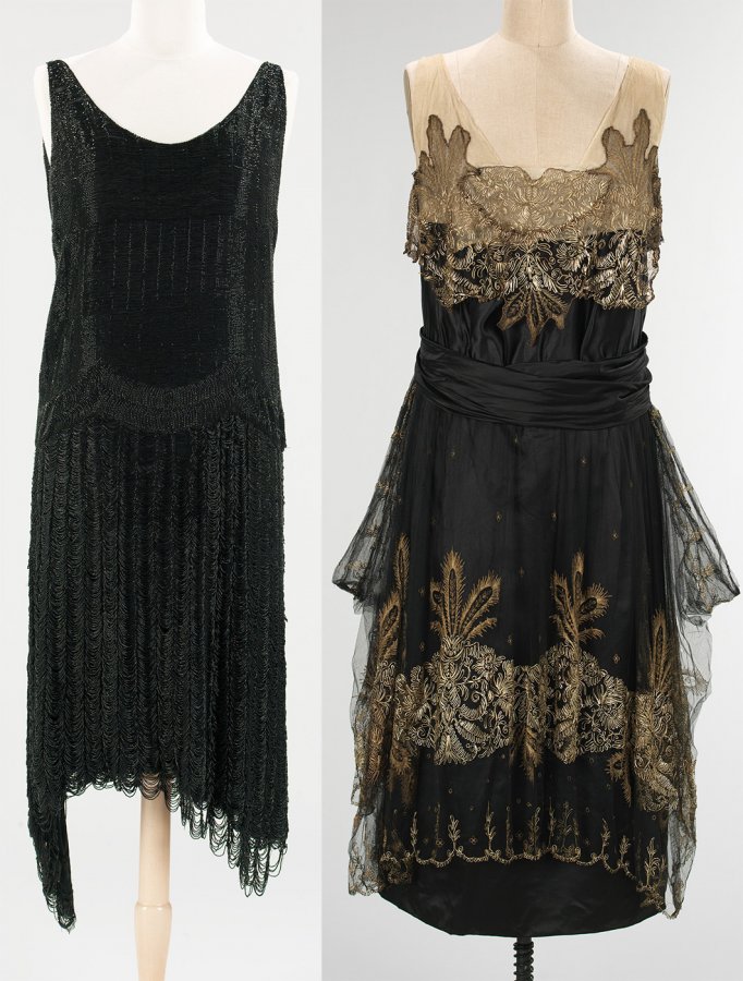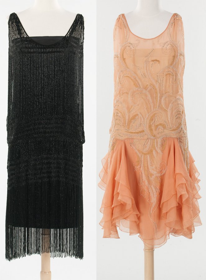 Et alors, que portaient ces femmes libérées ? Tout d'abord, ils se sont débarrassés du corset, ont enfilé des robes courtes de coupe droite libre et taille basse. La longueur des robes est principalement au-dessus du genou, mais elle peut aller jusqu'à la cheville. La simplicité de la coupe, la silhouette libre en quelque sorte, soulignaient le désir de la femme de se dire libre. Mais encore, il est naturel pour une femme de se décorer. Et peu importe à quel point Coco Chanel a essayé de libérer complètement une femme, toutes ses inventions ne pourraient exister sans ces "excès" dont une femme a toujours eu besoin. La simplicité de la coupe était contrebalancée par l'abondance du décor. Les robes étaient décorées de perles, de paillettes et de franges, de fleurs, de paillettes, de broderies et de volants.