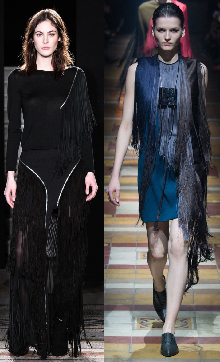 Après avoir parcouru de nombreuses collections de 2026 -2015, il convient de noter que cet élément de décor aimait particulièrement Roberto Cavalli... Le créateur utilise des franges non seulement dans les robes, mais aussi dans les accessoires. La marque Lanvin utilise la frange dans plusieurs de ses modèles. Les marques Tommy Hilfiger, Just Cavalli, Naeem Khan privilégient également les franges. L'une des robes les plus luxueuses que stylenow.techinfus.com a particulièrement appréciée est une robe de la collection Pamella Roland.