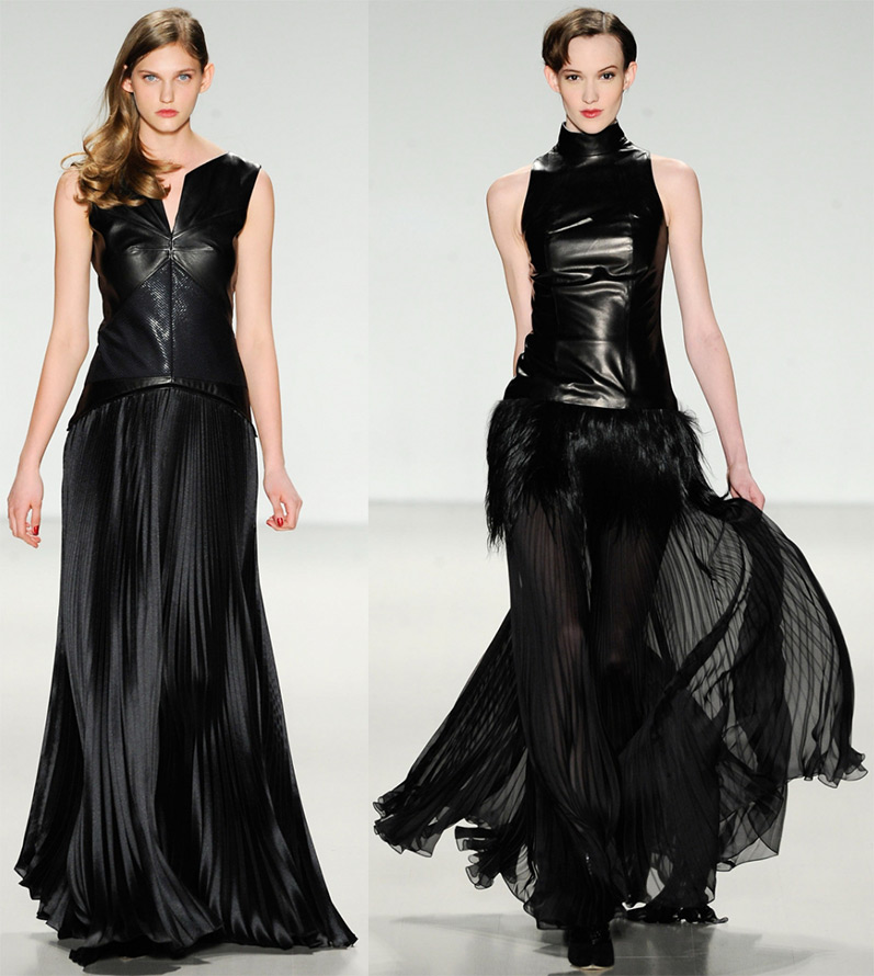 Dans la collection Pamella Roland, les robes noires associent plusieurs éléments : plissage, fourrure, cuir et féminité.