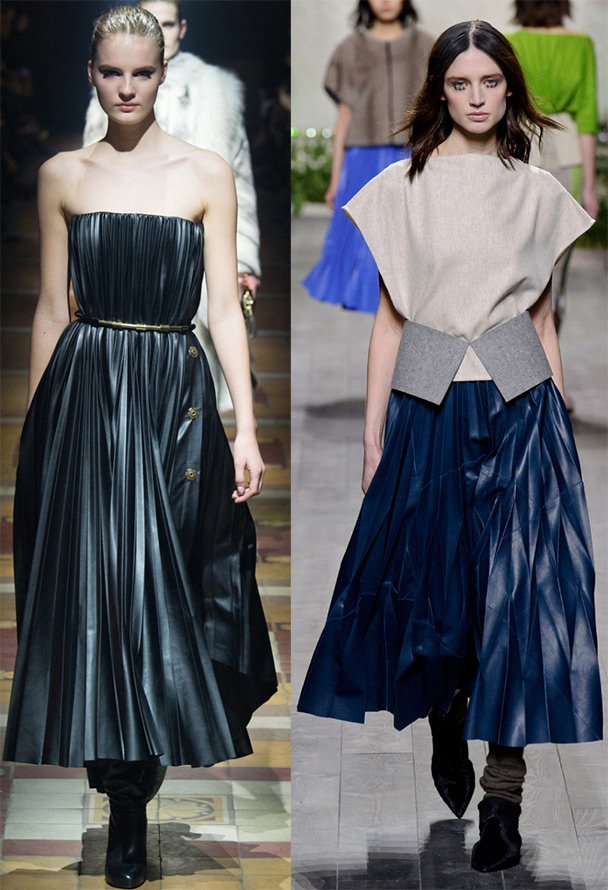 Les robes plissées ont l'air luxueuses non seulement avec des tissus légers et fins, mais aussi avec du cuir ou des matériaux imitant le cuir. Ce sont ces dernières qui sont les plus pratiques, puisqu'elles se froissent à peine.
