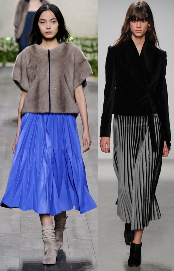 Plissage - Il s'agit d'une série de plis posés de différentes largeurs, qui peuvent être unilatéraux, en arc ou combinés, situés sur toute la largeur de la jupe ou à certains intervalles. Le plissage peut se faire sur des jupes droites et évasées. Ce sont les dernières qui sont à la mode de la saison automne-hiver 2025-2026. Et l'exemple le plus classique de plissage peut être les jupes des collections de Holly Fulton, Diesel Black Gold, Zuhair Murad, Valentino et bien d'autres comme eux.