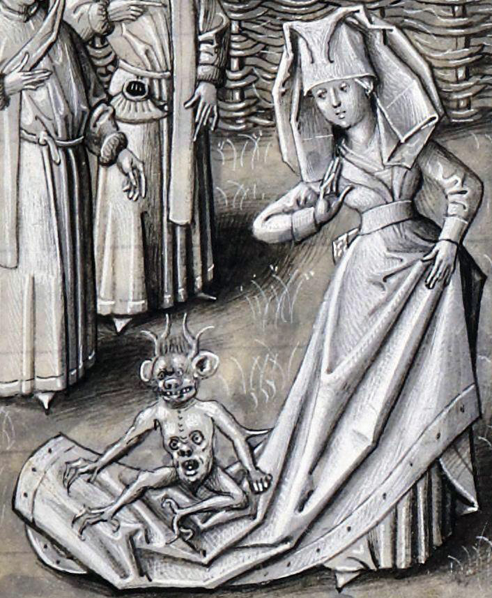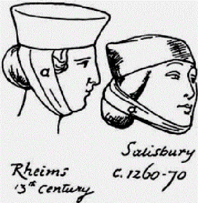 Quant aux coiffes, elles deviennent très hautes à l'époque gothique et prennent souvent des formes très bizarres.