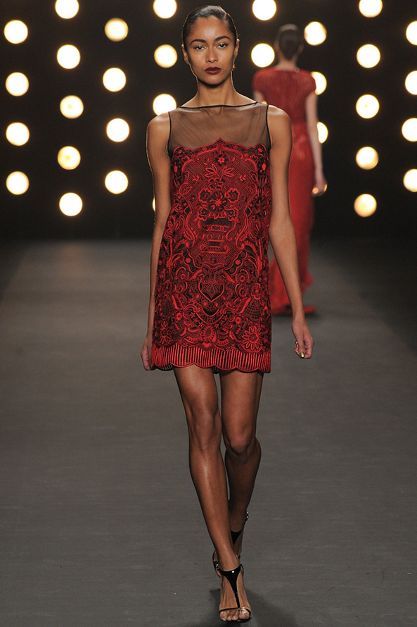 Les robes rouges et noires peuvent combiner différentes quantités de rouge et de noir. Dans certains modèles des collections automne-hiver 2025-2026, le rouge domine, et le noir l'est moins, quelque part au contraire, les robes sont presque noires, ornées de petites queues rouges, rappelant les flammes. Des robes similaires peuvent être vues dans la collection Roberto Cavalli.