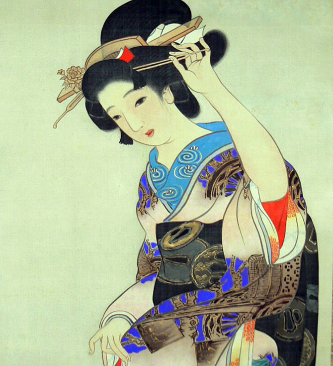 L'utilisation de produits cosmétiques au Japon était également intéressante. Les cosmétiques au Japon étaient utilisés par tout le monde - hommes et femmes. Selon l'étiquette du palais impérial, les Japonais devaient être habillés et fardés à la réception. Dans le même temps, les lèvres des femmes japonaises étaient le plus souvent teintées de peinture verte.
