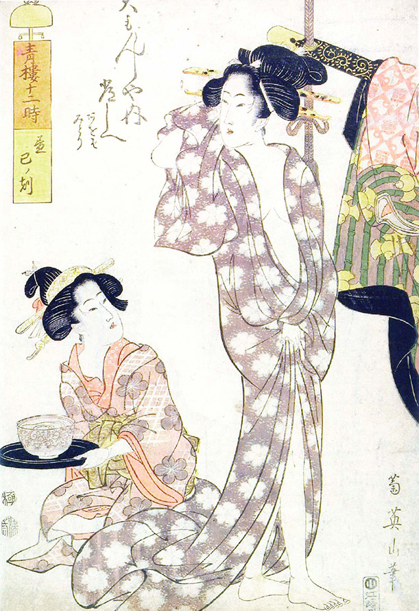 L'heure du serpent. Série Femmes à des heures différentes. Kikugawa Eizan. Période Edo (datée de 1812).