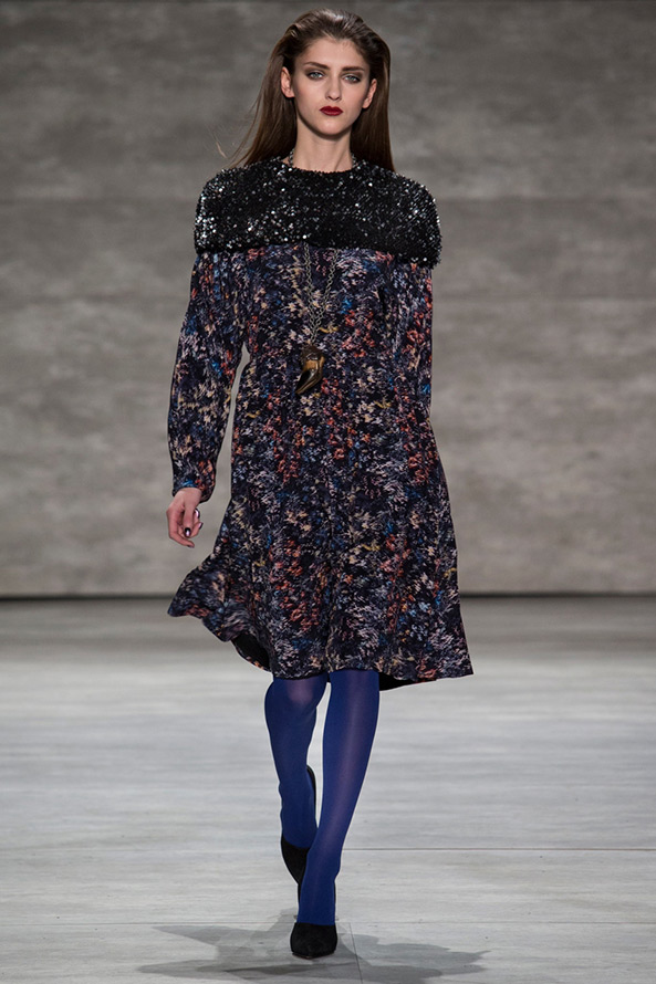 Malgré le fait que l'automne et l'hiver soient loin du printemps-été, ce n'est pas une raison pour s'habiller uniquement dans des tons gris foncé. Regardez les photos de robes des collections 14-15, ici vous pouvez voir beaucoup de couleurs vives, il y a un imprimé floral, de la dentelle et bien sûr le décor d'hiver traditionnel en fourrure naturelle, cuir et plumes.