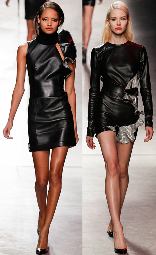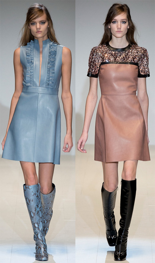 Dans les collections automne-hiver 2025-2026, il existe de nombreux modèles différents de robes en cuir et de robes qui imitent en quelque sorte la peau, dans certains cas, la peau de reptile. Le noir est toujours l'une des couleurs principales, mais si vous avez déjà une paire de robes en cuir noir dans votre garde-robe, ne vous inquiétez pas - les créateurs proposent de nombreuses couleurs différentes. Par exemple, Gucci, J Mendel, Vivienne Tam, Daks, Valentino et autres...