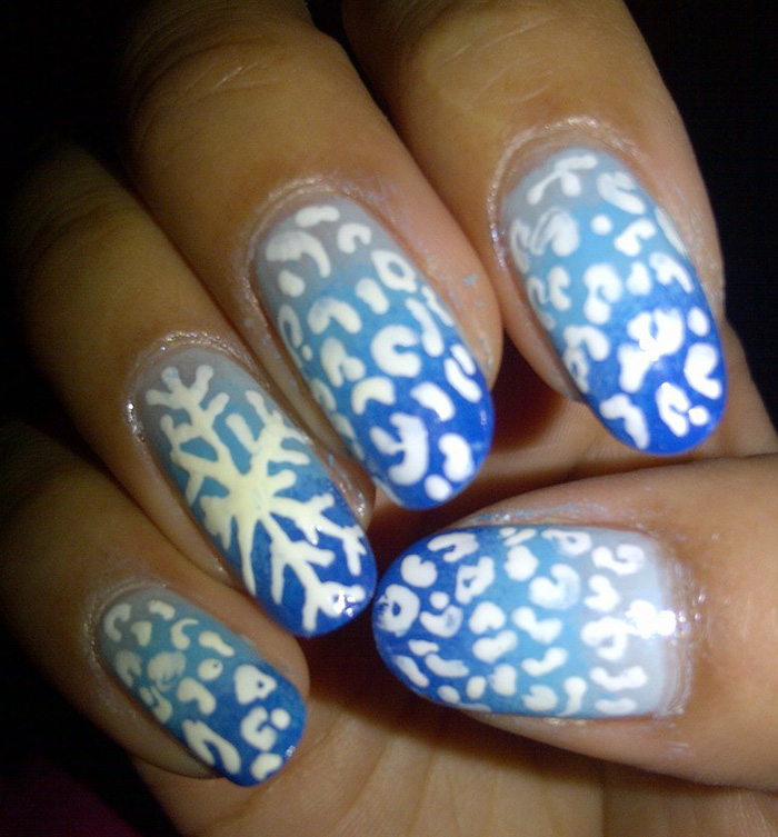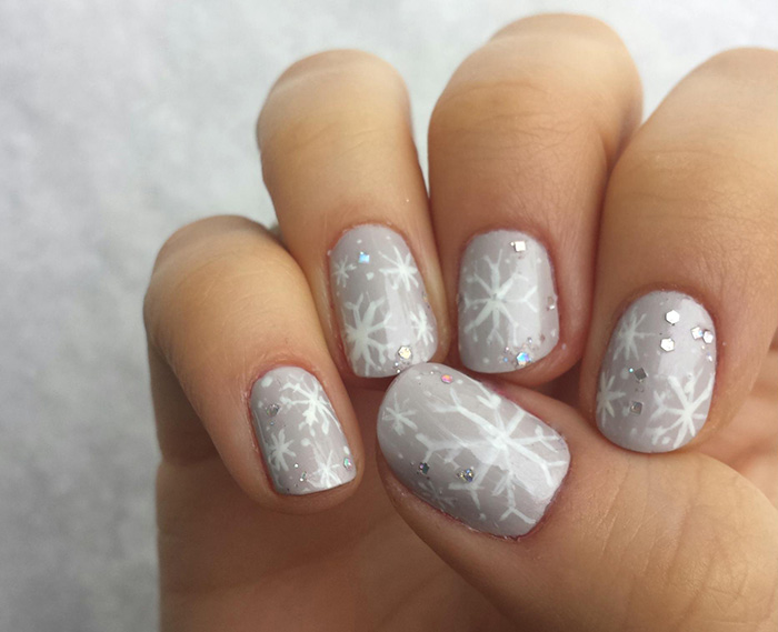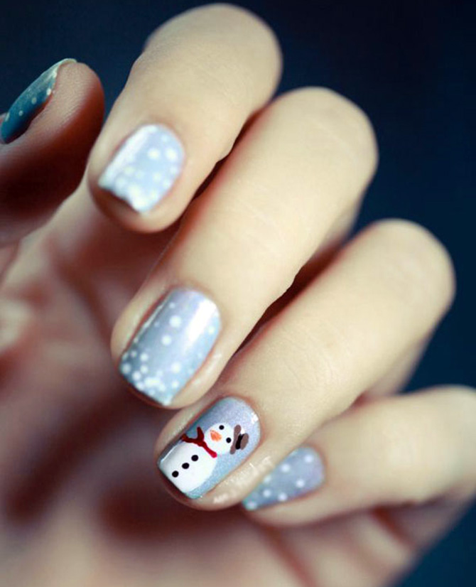 En plus des dessins du Nouvel An, il n'est pas interdit de coller des strass et de décorer le bout des ongles de paillettes argentées. Une telle manucure du Nouvel An sera un excellent choix si vous décidez de vous essayer dans le rôle de la Snow Maiden ou de la Snow Queen le soir du Nouvel An.