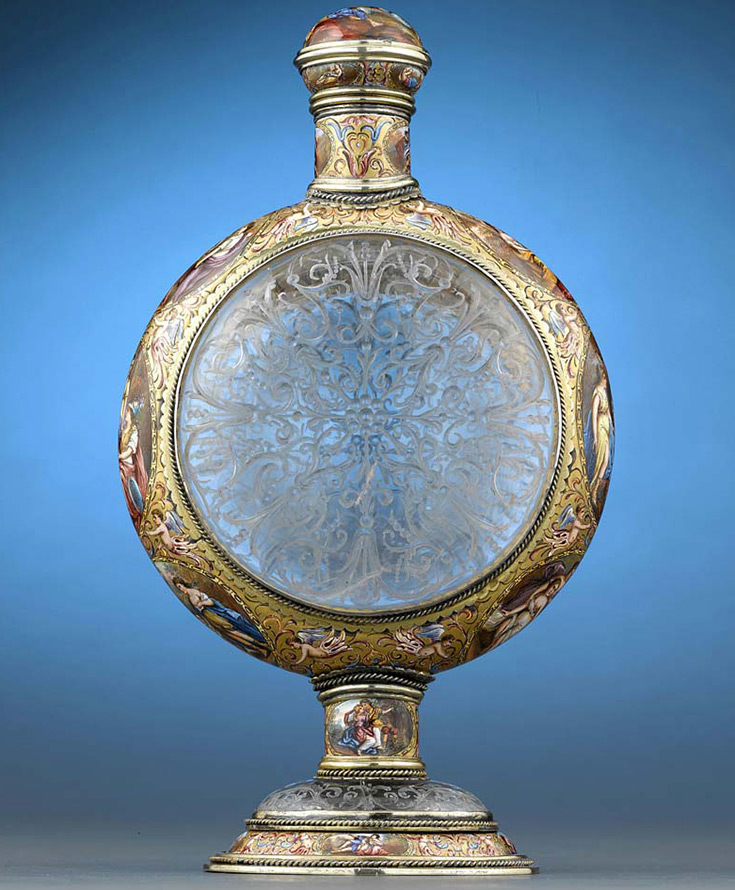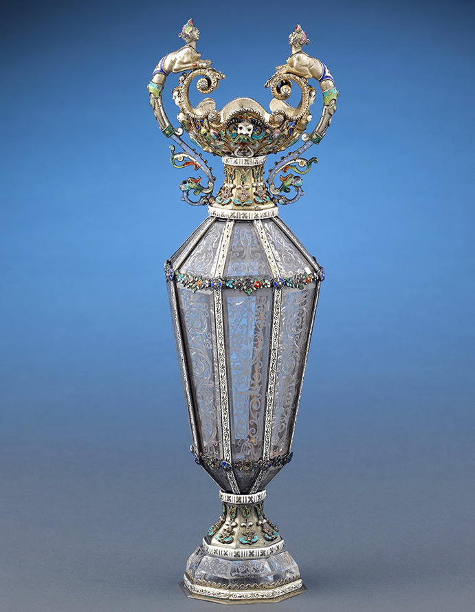 Des bols, des tasses et divers bijoux étaient en cristal. Carl Fabergé aimait beaucoup travailler le cristal de roche. Dans la nature, il existe des cristaux de cristal de roche similaires aux diamants. Ils ont été trouvés en Crimée - Diamants de Crimée, dans les Carpates - Diamants de Marmaros, en France - Diamants d'Alençon. Des gisements de cristal de roche sont connus en Russie (Oural, Extrême-Orient, Yakoutie), au Brésil, en Suisse, au Canada, en Australie, aux États-Unis, à Madagascar, etc. Les cristaux de cristal de roche les plus gros, de haute qualité et les plus purs se trouvent dans l'Oural, le Pamir et Iakoutie du Sud.