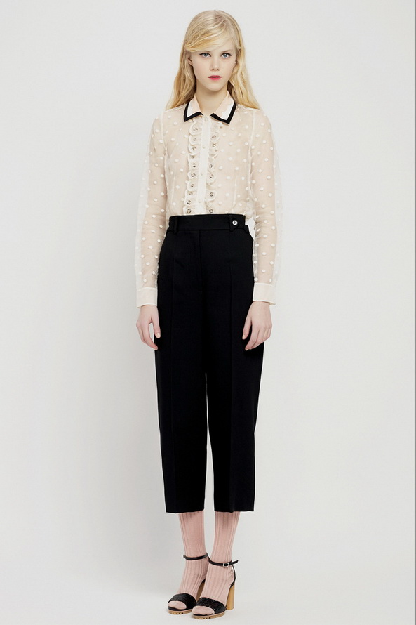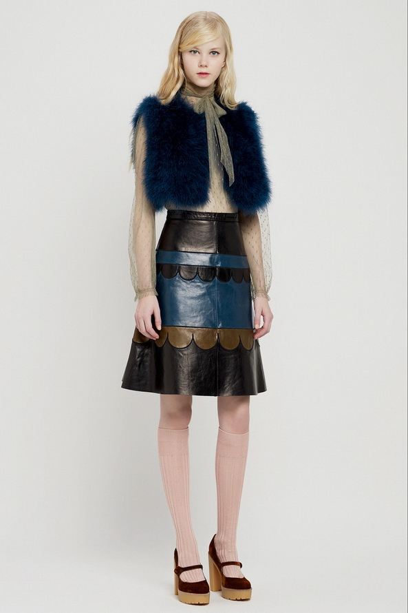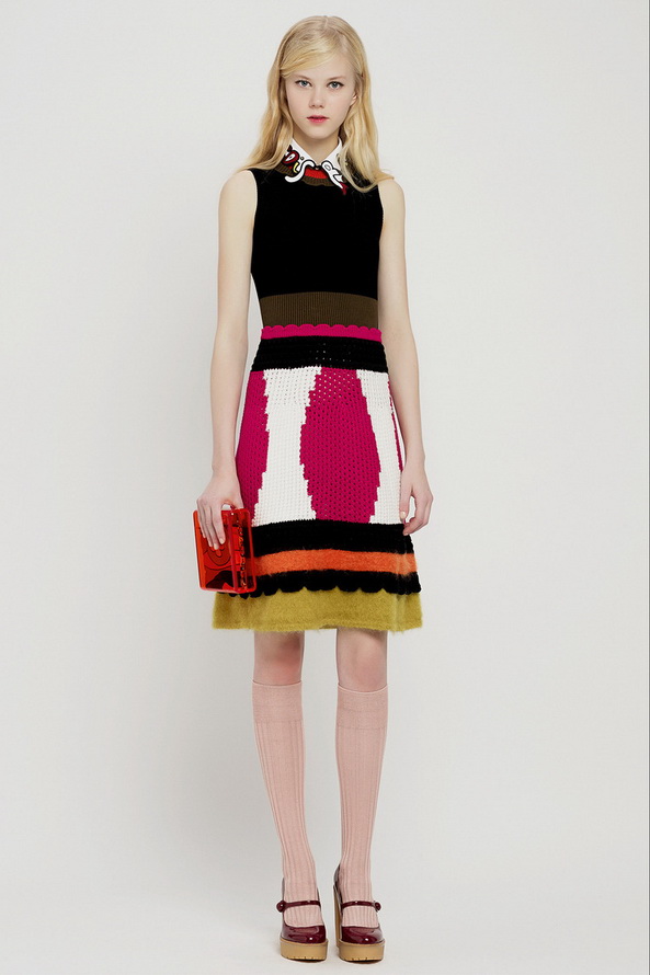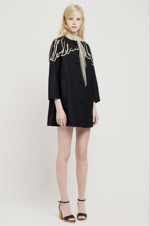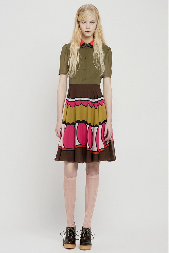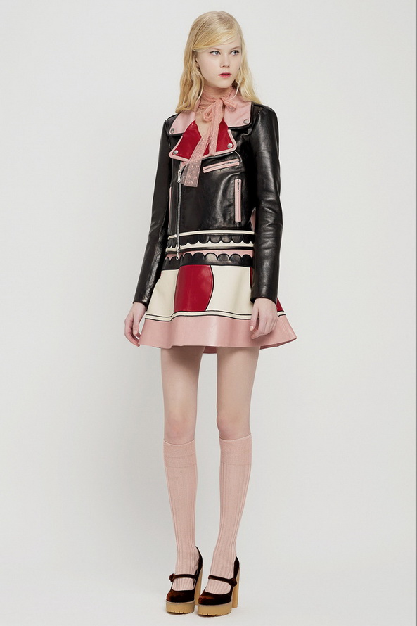 La nouvelle collection pré-automne hors saison pour l'automne et l'hiver de Red Valentino est très riche, nous pouvons voir ici diverses robes et jupes, chemisiers en mousseline de soie, organza, dentelle, cuir et autres matériaux. Vieillies dans le style des années 60, les jupes courtes et les robes trapèze sont décorées de divers imprimés floraux et pop art.