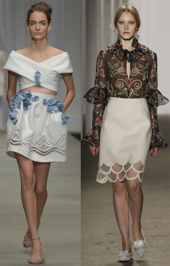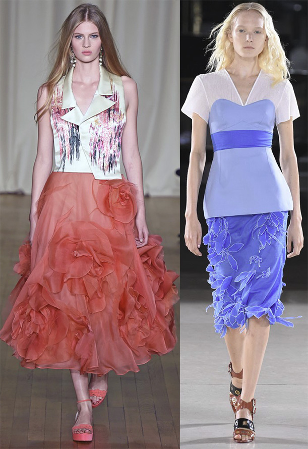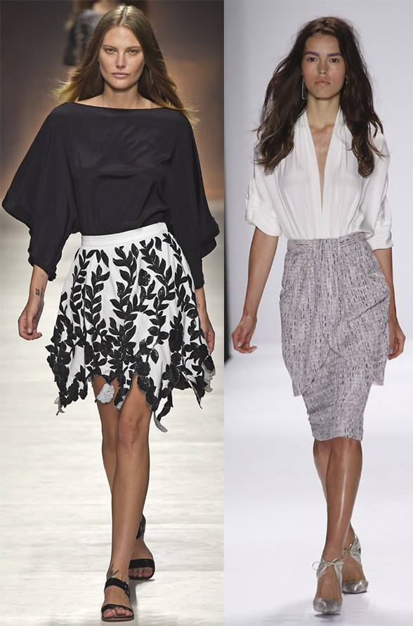 Toutes sortes de coupes, volants, froufrous ne sont pas exclus de la nouvelle saison et continuent de nous décorer ainsi que nos jupes.