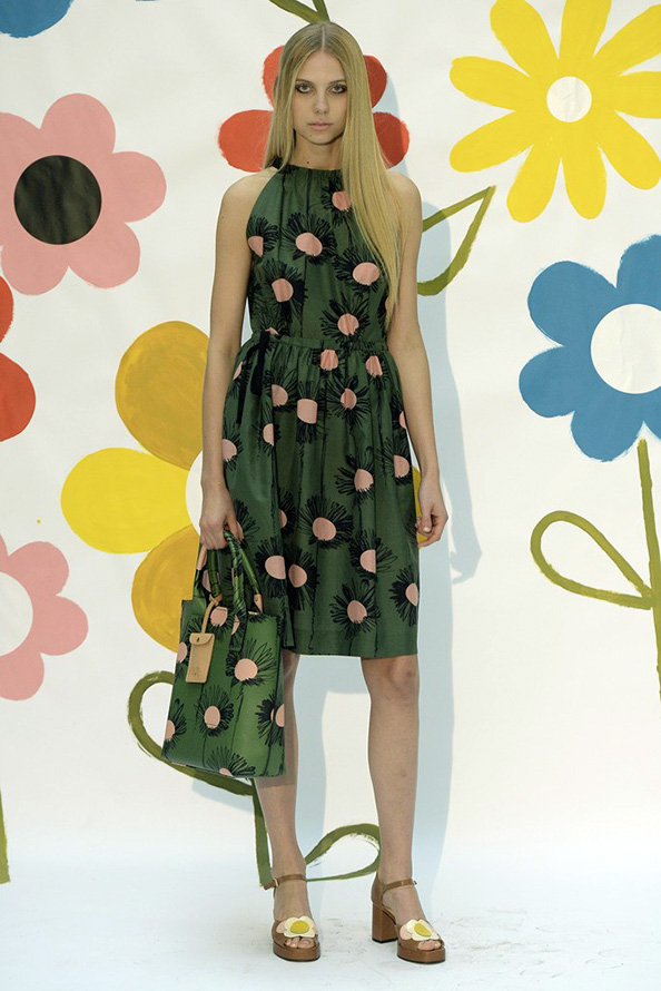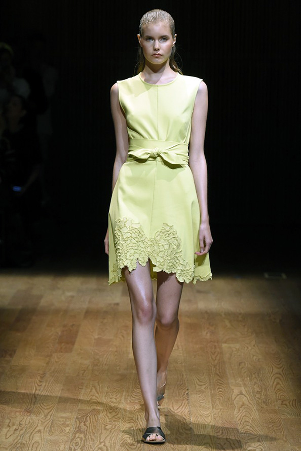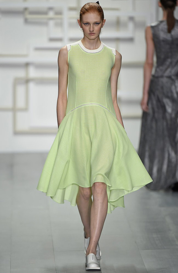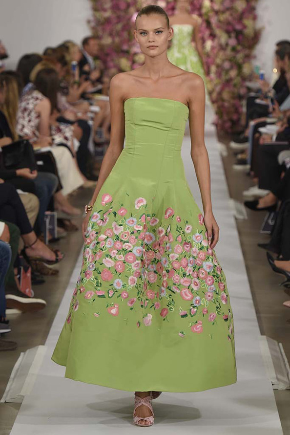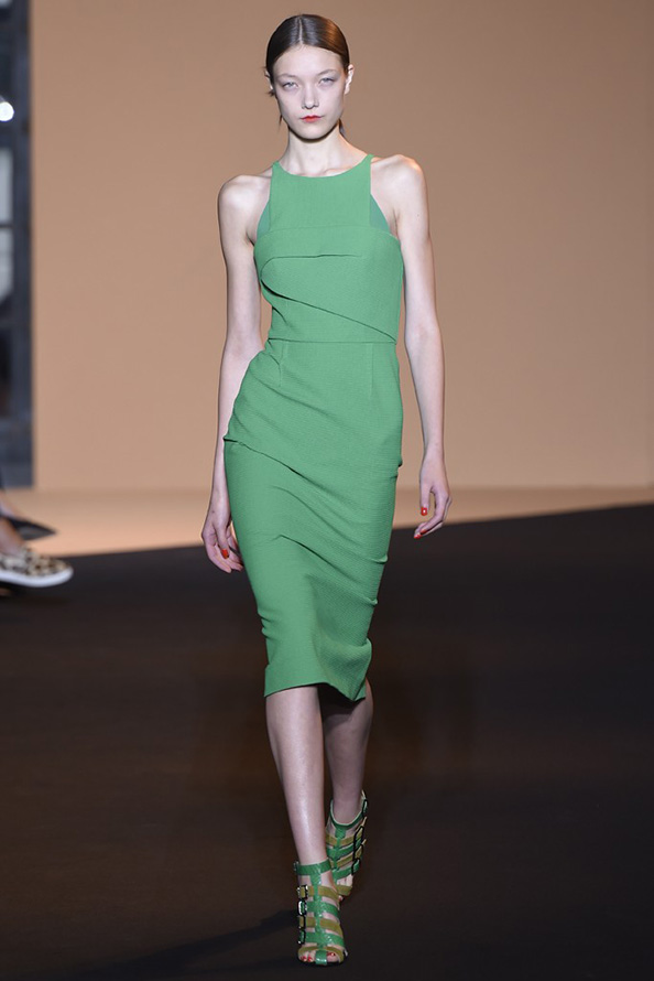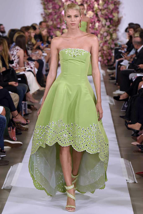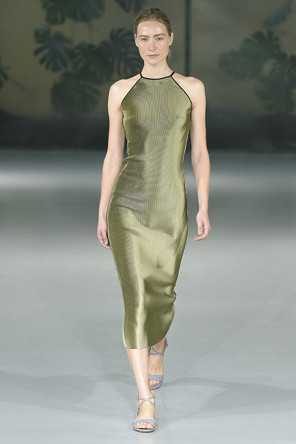 Gucci propose une robe en cuir de luxe, tandis que Giles propose une robe verte étincelante aux couleurs volumineuses et bidimensionnelles. La collection Tods a une robe verte perforée, tandis que John Galliano a des robes longues et aérées qui symbolisent littéralement le printemps.