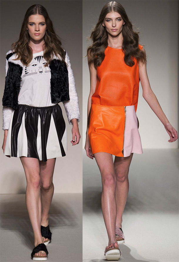 Printemps et été 2026 une variété de jupes en cuir seront pertinentes, mais en général elles ont toutes une longueur assez courte, et cela s'explique par la praticité habituelle. Les jupes taille haute sont pertinentes. Des jupes perforées peuvent être vues dans certaines collections.