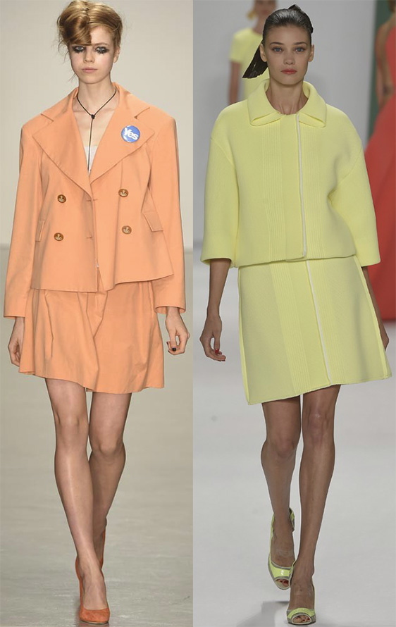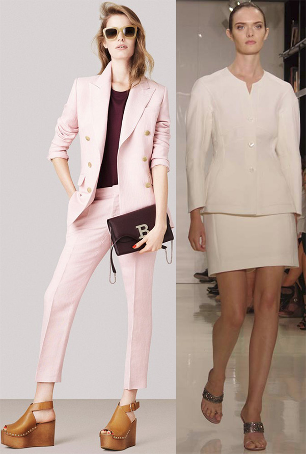 Les créateurs proposent les couleurs et les styles les plus audacieux pour des costumes, des mini-jupes et des hauts, des tuniques au lieu de vestes, avec ou sans imprimés. Ils peuvent être combinés avec des chemisiers et des hauts brillants, bien que dans certains cas, vous puissiez vous permettre et vous passer de hauts et de chemisiers en mettant la veste directement sur votre corps nu. À leur manière, les ensembles sont originaux, dans lesquels le haut et le bas diffèrent par la couleur ou l'impression.