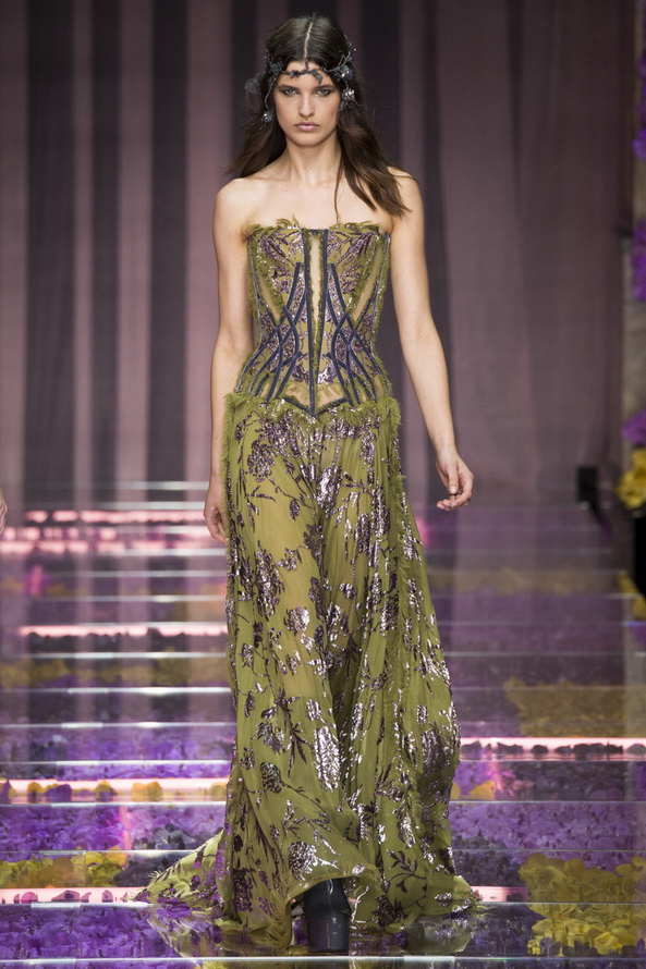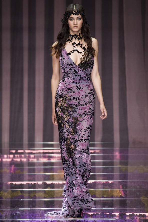 Ainsi, la collection couture Atelier Versace peut être considérée comme une sorte de retour aux valeurs traditionnelles. En tout cas, la nouvelle fille de Versace n'est pas dénuée de confiance en elle, elle sait toujours ce qu'elle veut et aspire au meilleur et au plus luxueux. C'est juste que maintenant au lieu d'une femme prédatrice - un chat, elle s'est transformée en une belle nymphehabillés de tissus translucides coûteux.