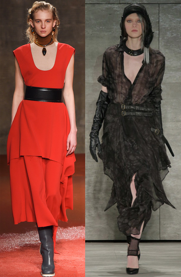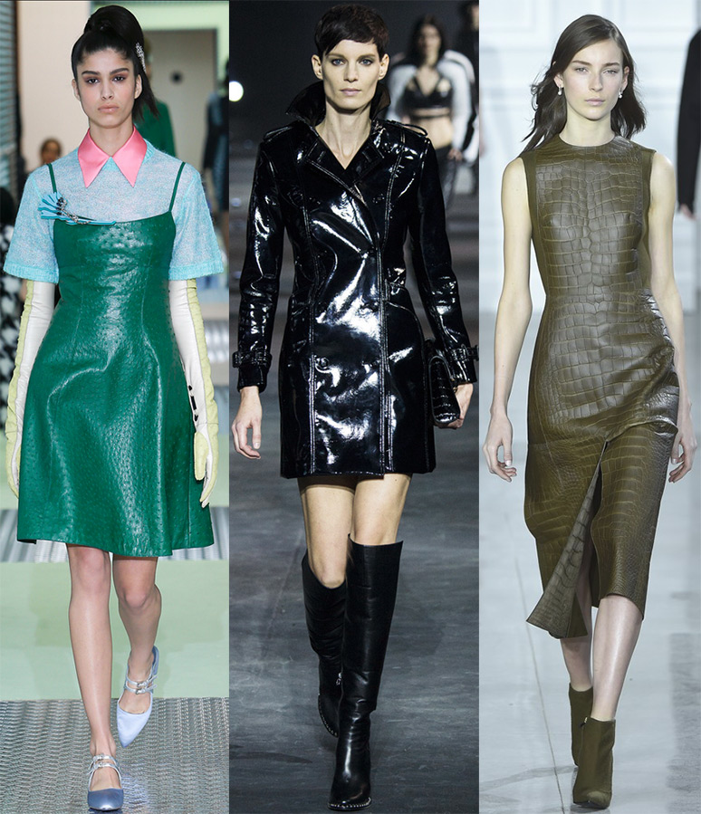 Beaucoup de peau: pantalons en cuir, jupes, costumes, manteaux, toutes sortes de combinaisons de cuir avec de la fourrure ou du tissu.