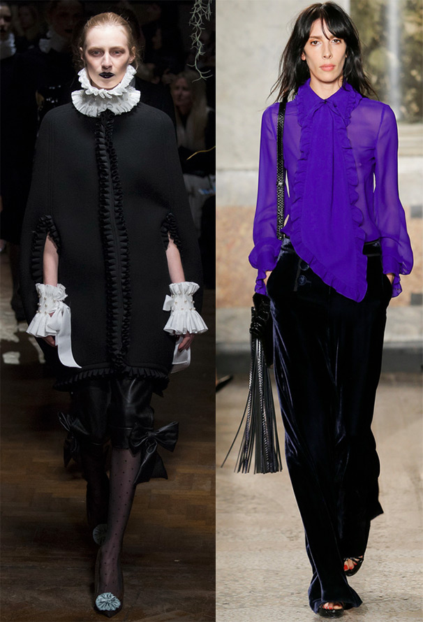 27. Volants et volants ne se font pas attendre longtemps. Et s'ils commencent à les oublier un peu, ils semblent immédiatement faire tourbillonner les fashionistas dans un tourbillon de cascades luxueuses. Où les designers les placent-ils ? Partout. Mais les plus intéressants sont les produits à col montant ondulé. Chemisiers avec un col haut en dentelle, dans lequel le cou doit être fermé. La plupart des options de blouses sont quelque peu démodées et romantiques.