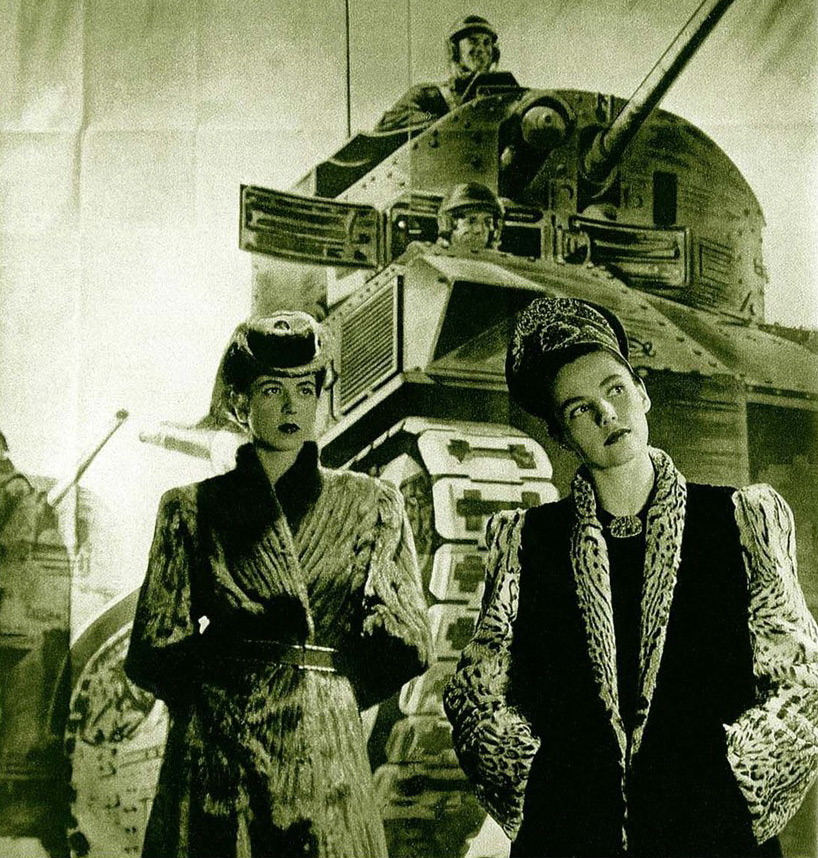 La guerre a également influencé la mode. Premièrement, il y a une déficience tissulaire. Par exemple, en 1940, la France a promulgué un « décret sur la limitation de l'approvisionnement », selon lequel une certaine quantité de tissu était allouée, qui pouvait être utilisée pour la production de vêtements (plus de 4 mètres de tissu ne pouvaient pas être dépensés pour coudre un manteau).