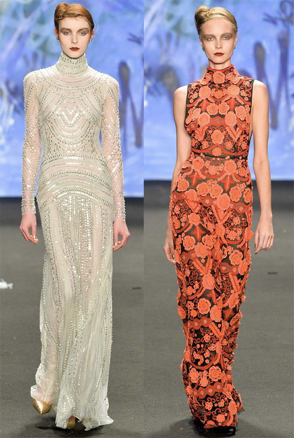 Ici, vous ne verrez pas quelque chose de radicalement nouveau, toutes les robes s'inscrivent dans la compréhension traditionnelle de la beauté, et donc ma sélection peut sembler ennuyeuse pour les fashionistas particulièrement sophistiquées. Si vous adhérez aux valeurs traditionnelles et que l'or est toujours le roi des métaux pour vous, et que la dentelle, la broderie, les perles, les strass et la fourrure sont le meilleur décor pour une robe de fête, vous ne serez pas déçu.