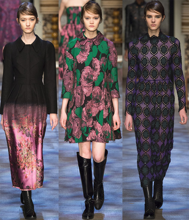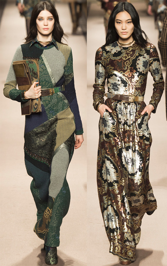 Blumarine, Guy Laroche, Saint Laurent, Bibhu Mohapatra proposent des modèles plus élégants, tandis que Dolce & Gabbana, Burberry Prorsum, Etro proposent des robes lumineuses et gaies.