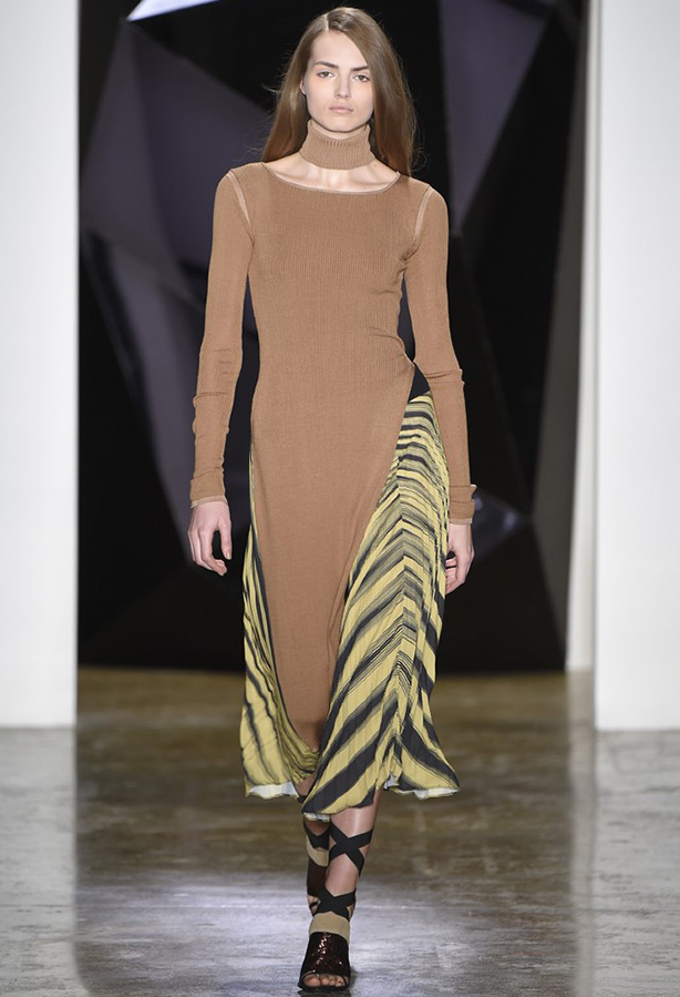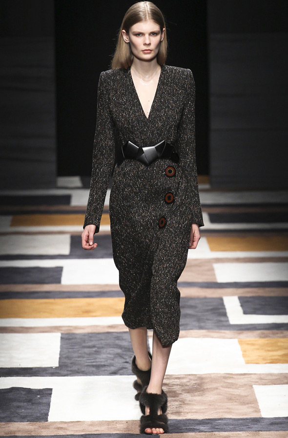 Emilia Wickstead propose une très robes chaudes, ils sont vraiment hivernaux, et à l'automne ils peuvent remplacer un imperméable ou un manteau léger. Seules les fashionistas sophistiquées trouveront ces robes grossières, et l'une d'elles vous rappellera les sacs des navettes et autres commerçants de marchandises douteuses. Rappelez-vous cet imprimé à carreaux, il répète presque complètement l'impression sur d'énormes sacs que l'on pouvait voir auparavant dans tous les marchés et gares.