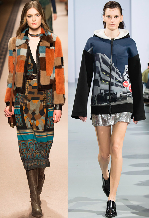 De nombreuses vestes de sport sont proposées par H&M Studio et Rag Bone, des vestes - des vestes de motard Diesel Black Gold, des bombers - Tommy Hilfiger, de la fourrure - Ralph Lauren et les modèles les plus simples que beaucoup dans la garde-robe sont sûrs de trouver - Chalayan, J Crew, Peuterey et bien d'autres marques....