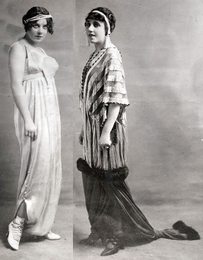 L'auteur de la mode dans ces années d'avant-guerre était le célèbre couturier - Paul Poiret. Les danses d'Isadora Duncan ont influencé les premiers costumes de Poiret - elles avaient aussi un caractère antique. C'est lui qui a commencé le combat avec des corsets.